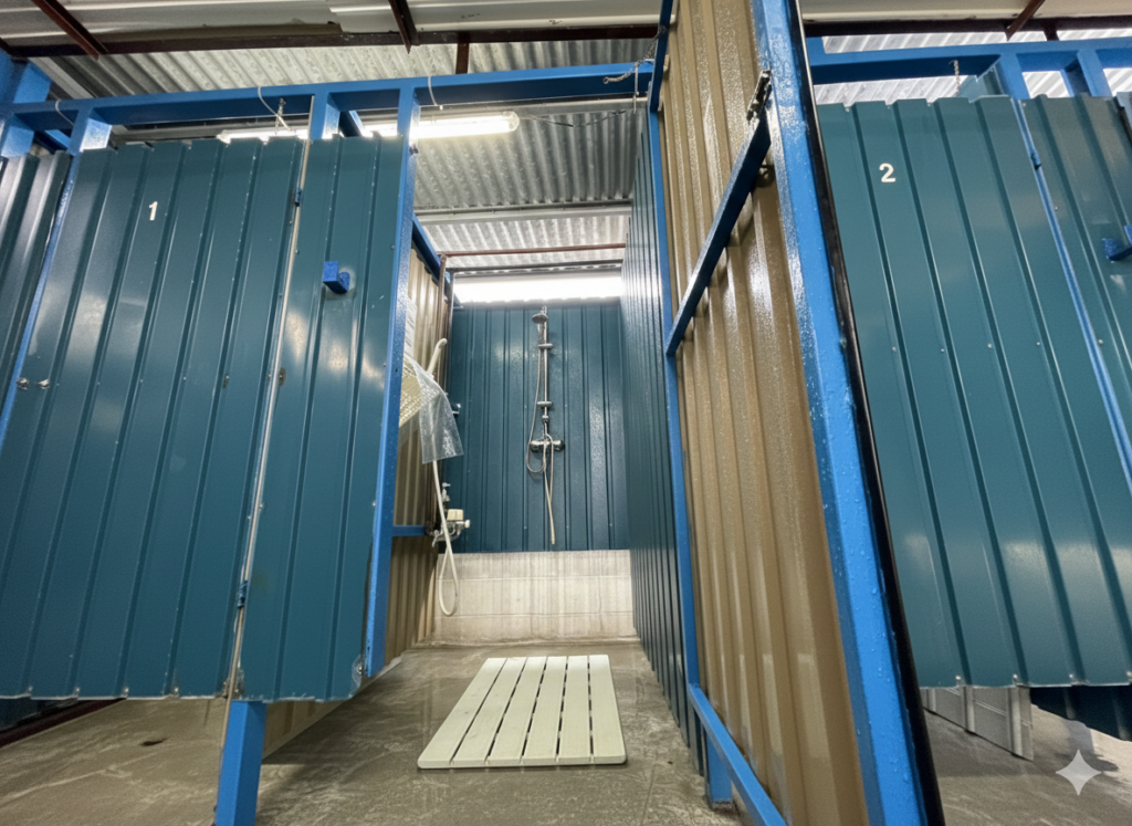 温水シャワー&アメニティ完備 冷たい水でサッと流すだけ…なんてことはさせません!