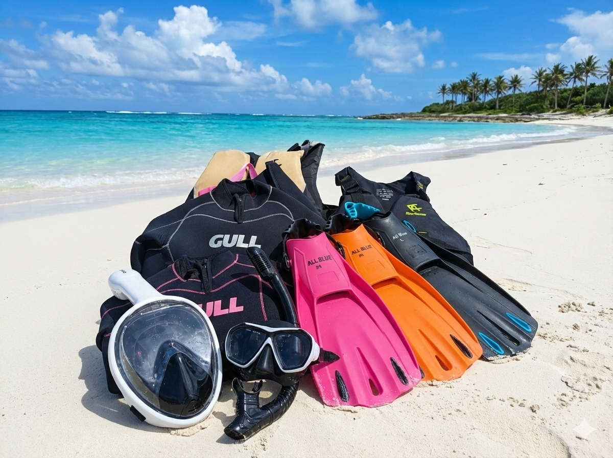必要な機材は全部レンタル無料。必要な物は水着、飲物、タオル着替えのみ。ショップには駐車場や更衣室、温水シャワーも完備しています。少し寒い時期はウエットスーツを無料貸し出しで寒くない!