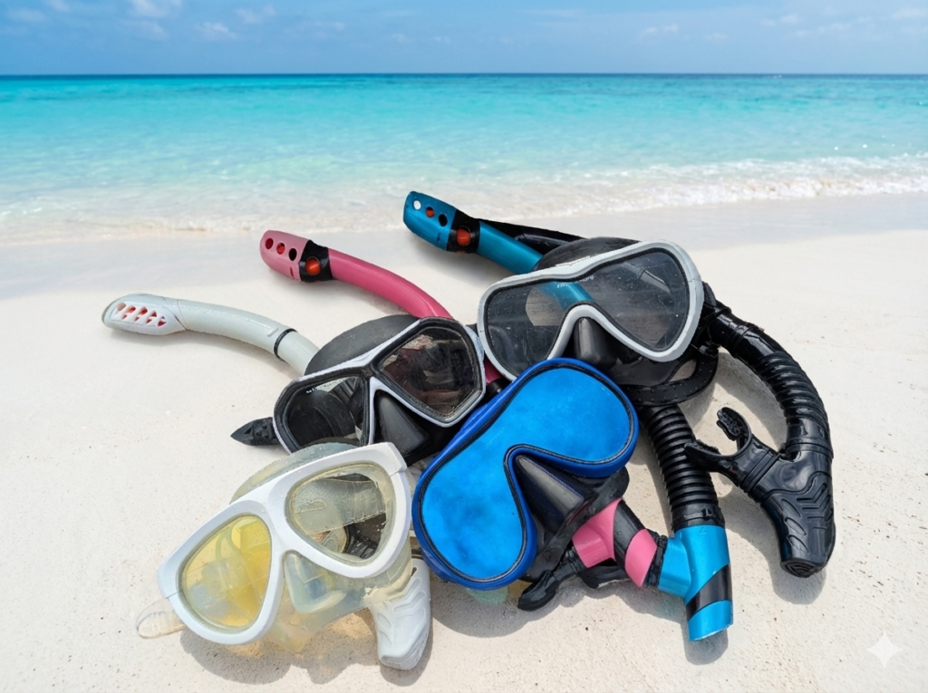- シュノーケリングセット: シュノーケル、マスク、フィンは現地でレンタルできますが、自分の体に合ったものを使うとより快適に楽しめます。特に、度付きのマスクが必要な方は、事前に準備しておきましょう。